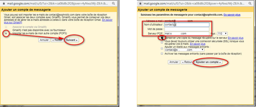Etape 3 - Laissez cocher "Importer les emails de mon autre compte" - Cliquez sur SUIVANT - Entre le nom d'utilisateur, le mot de passe et le serveur POP - Ce sont des informations qui vous ont été fournies par le créateur de votre email - Validez